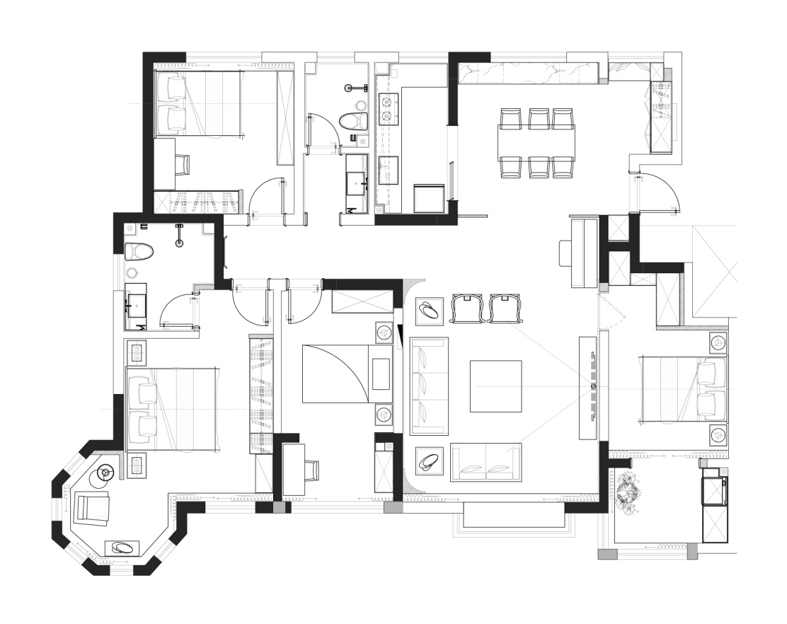 不同于客餐廳的新中式的風(fēng)格,臥室想要營(yíng)造的感覺(jué)是舒適自然的,褪掉一天工作的辛苦和勞累,擁有一個(gè)舒適的空間可以休息補(bǔ)充力量。