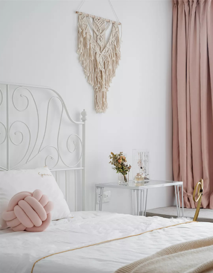電視背景局部以紋理動感很強的巖板裝飾,創造出與眾不同、個性十足的視覺效果,將它與大白墻搭配,達到了整體和諧的狀態。